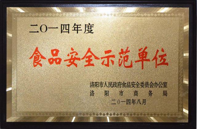 2014年9月3日下午,洛陽市召開創(chuàng)建食品安全示范單位現場推進會,洛陽市政府領導、相關委局負責人及食品安全示范單位申報企業(yè)參加了推進會,會上授予洛陽正大食品有限公司“食品安全示范單位”。